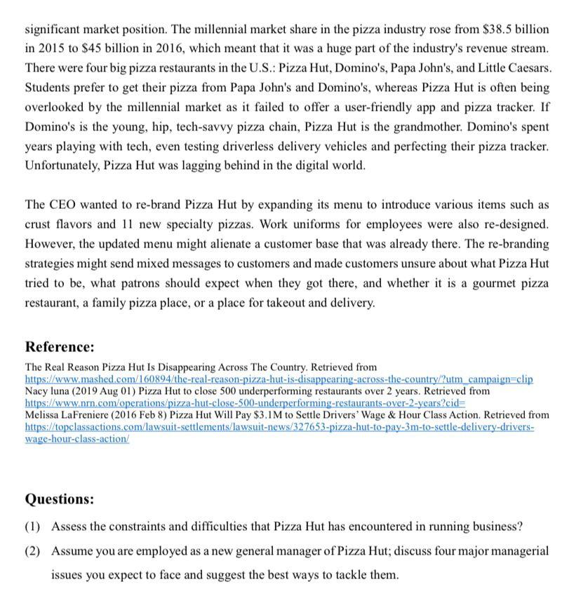 Solved Pizza Hut Is An American Multinational Restaurant Chegg Com